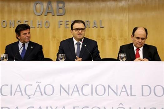 Ao final de seu discurso, Marcus Vinicius recebeu das mãos do presidente da Advocef, Álvaro Wilier Júnior, um exemplar da Revista do Direito da entidade.