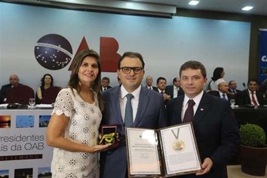 Além da medalha, o presidente nacional da OAB, Marcus Vinicius Furtado Coêlho, recebeu de Willian Guimarães, presidente da Seccional piauiense, uma placa de agradecimento ao comprometimento, seriedade e compromisso dedicados às causas da República.
