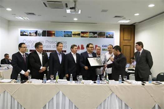 Teresina (PI) - O Colégio de Presidentes de Seccionais, reunido nesta sexta-feira (18), homenageou Marcus Vinicius Furtado Coêlho, presidente nacional da Ordem. Foi entregue uma placa comemorativa pela sua gestão, que terminará em janeiro de 2016.
