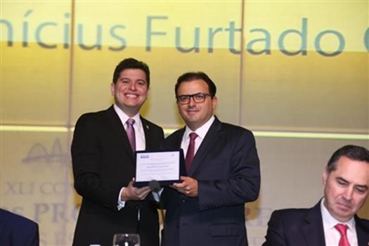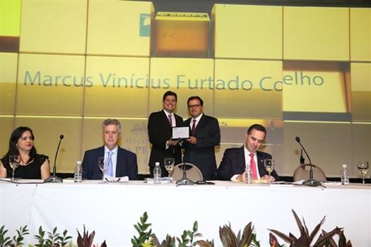 Brasília – Marcus Vinicius Furtado Coêlho, presidente nacional da OAB, foi homenageado na abertura do XLI Congresso Nacional dos Procuradores dos Estados e do Distrito Federal, realizada nesta terça-feira (13) em Brasília. Ele recebeu do presidente da Anape, Marcelo Terto e Silva, um certificado de reconhecimento por sua atuação combativa contra o desrespeito às prerrogativas e a favor da garantia dos direitos profissionais do advogado público.