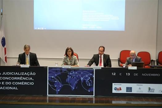 Brasília - A programação oficial do seminário “Os desafios da judicialização da defesa da concorrência, da regulação e comércio internacional” teve início na manhã desta sexta-feira (13), na seda da OAB Nacional, em Brasília. O primeiro painel debateu o impacto nas políticas de comércio internacional e defesa da concorrência decorrente das decisões judiciais. A ministra do STJ Maria Isabel Galotti moderou o encontro.
