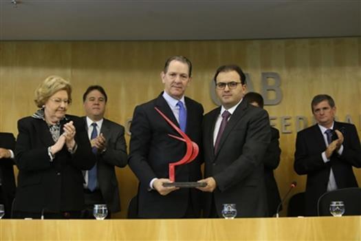 Brasília - A OAB Nacional homenageou o ministro do STJ João Otávio de Noronha com o Troféu Raymundo Faoro por seus serviços prestados à advocacia. Advindo do Quinto Constitucional, o magistrado defendeu o instrumento como maneira de oxigenar a composição dos tribunais e levar outras experiências aos jurisdicionados.
