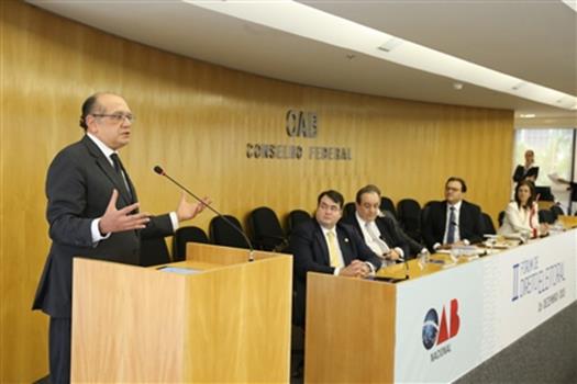 Durante participação no II Fórum de Direito Eleitoral, realizado pela OAB nesta quarta-feira (16), Gilmar Mendes elogiou a preocupação do presidente nacional da Ordem, Marcus Vinicius Furtado Coêlho, com uma modelagem institucional que permita enfrentar crises de maneira mais efetiva, eficaz e racional.