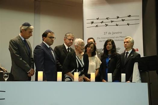 Além dos 6 milhões de judeus, foram lembrados especialmente Bem Abraham e Aleksander Laks, vítimas do holocausto e falecidos em 2015. Um vídeo de 3 minutos de duração homenageou a valente trajetória dos dois. A cerimônia foi encerrada ao som do hino dos partisans judeus.