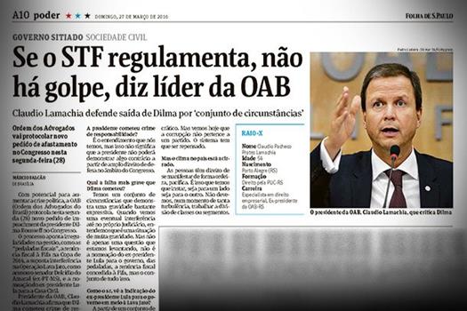 Deu na Folha: Se o STF regulamenta, não há golpe, diz líder da OAB