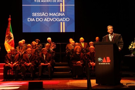 Porto Alegre (RS) “Temos que comemorar o dia 11 de agosto como o dia daquele que é o verdadeiro defensor da liberdade, da honra, do patrimônio, e, muitas vezes, da própria vida das pessoas”, afirmou o presidente nacional da OAB, Claudio Lamachia, durante a comemoração do Dia da Advocacia em Sessão Magna, na quinta-feira (11), em Porto Alegre. A OAB/RS prestou homenagens, renovou os quadros da seccional com novos profissionais e saudou as conquistas e as lutas da classe.