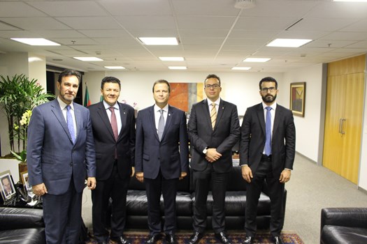 Brasília – O presidente nacional da OAB, Claudio Lamachia, recebeu nesta terça-feira (16), em visita de cortesia, o presidente Ajufe (Associação dos Juízes Federais do Brasil), Juiz Roberto Carvalho Veloso. Além de Veloso, participaram ainda do encontro, o juiz Nelson Gustavo Mesquita Ribeiro Alves, vice-presidente da 4ª Região, o juiz Antônio José de Carvalho Araújo, vice-presidente da 5ª Região, e o desembargador Márcio Antonio Rocha, do Tribunal Regional Federal da 4ª região.