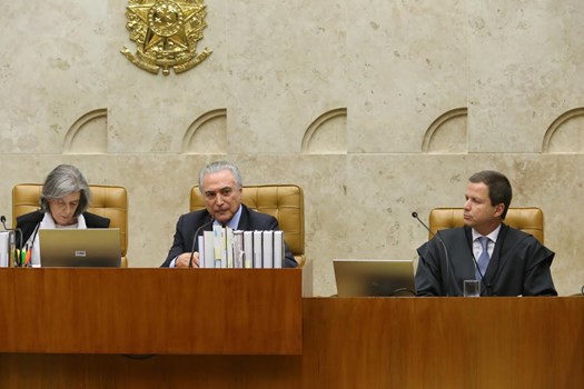 O presidente da República também proferiu breve discurso na sessão solene. Michel Temer lembrou que foi um dos constituintes de 1988. Ele propôs à presidente do STF, ministra Carmen Lúcia, a construção conjunta com o Judiciário de um novo pacto federativo.