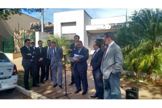 Naviraí (MS) - Na tarde da última quarta-feira (14), foi realizado na frente da Subseção da OAB de Naviraí-MS, o ato de desagravo público em favor do presidente da entidade, Emanuel Ricardo Marques Silva.