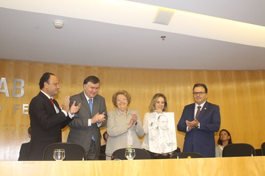 Márcia Machado Melaré, conselheira federal por São Paulo e filha do homenageado, representou a família. Ela recebeu uma lembrança em nome do Conselho Federal, entregue pela conselheira decana, Cléa Carpi, pelo presidente da OAB-SP, Marcos da Costa, e o membro honorário vitalício Marcus Vinicius Furtado Coêlho.
