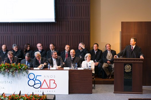 Brasília – O protagonismo da OAB Paraná na defesa do Estado Democrático de Direito pautou o discurso do presidente nacional da OAB, Claudio Lamachia, na solenidade de 85 anos da seccional. “Ao homenagear a OAB Paraná pelos seus 85 anos, temos que homenagear a todos os dirigentes e advogados. Cada um dos ex-presidentes representa a consolidação do Estado Democrático de Direito. O respeito ao passado é alicerce fundamental para a construção do futuro. Eles não representam o passado, mas o futuro, pela lição que nos deram”, sustentou.
