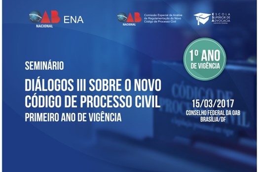 O Diálogos III Sobre o Novo Código de Processo Civil será realizado no dia 15 de março, a partir das 10h, na sede da OAB Nacional, em Brasília. O endereço é Setor de Autarquias Sul, Quadra 5, Bloco M. O evento também será transmitido pela internet, no site da OAB.