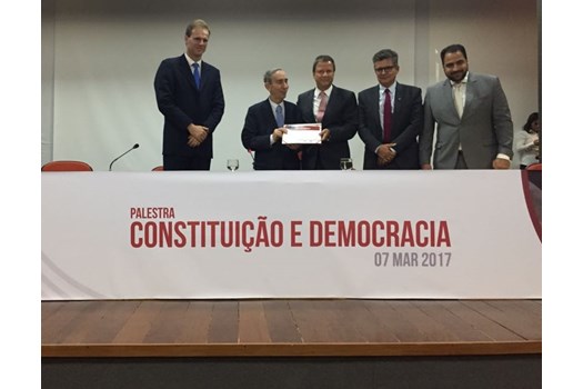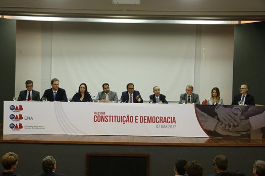 O presidente nacional da OAB, Claudio Lamachia, entregou ao jurista o certificado de palestrante e elogiou sua trajetória. “Gostaria de agradecer profundamente a presença do professor, referência para todos nós, para nossa Constituição e os operadores do direito”, afirmou.