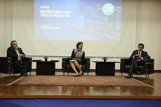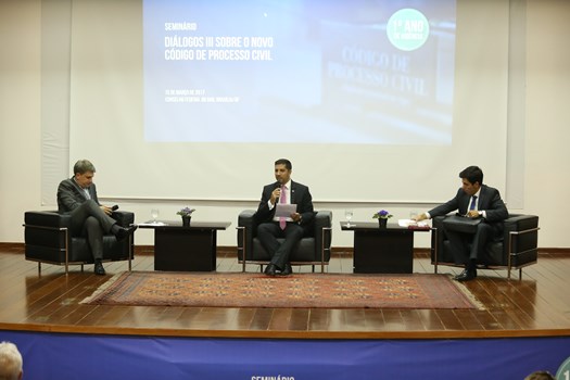 O Diálogos III sobre o Novo Código de Processo Civil reuniu especialistas de todo o país para refletir sobre o primeiro ano de vigência do texto legislativo. O primeiro painel reuniu o ministro do Tribunal de Contas da União Bruno Dantas, que analisou o presente e o futuro do IRDR (Incidente de Resolução de Demandas Repetitivas), que surgiu com o Novo CPC. Em seguida, Estefânia Viveiros, presidente da Comissão de Regulamentação do Novo CPC, falou sobre honorários sucumbenciais recursais, enquanto Arnoldo Camanho de Assis, desembargador o TJDFT, falou sobre saneamento no Novo CPC e o papel do advogado. Fechando a parte da manhã, o advogado Jorge Amaury Maia Nunes aborda os negócios jurídicos processuais.