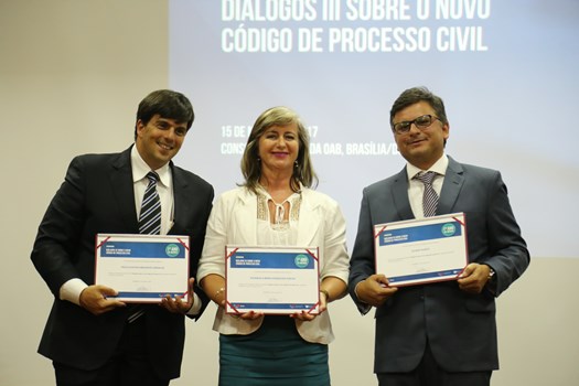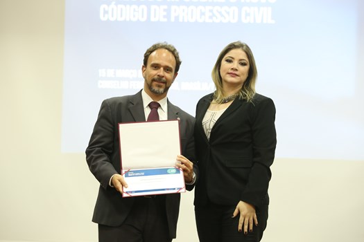 Foram entregues placas de homenagem ao presidente nacional da OAB, Claudio Lamachia; ao ministro do STF Luiz Fux, presidente da comissão que elaborou o anteprojeto do CPC no Senado; ao ministro do STJ Humberto Martins; ao membro honorário vitalício da OAB Marcus Vinicius Furtado Coêlho; à Teresa Arruda Alvim, relatora da comissão que elaborou o anteprojeto do CPC no Senado; à Estefânia Viveiros, presidente da Comissão de Análise da Regulamentação do Novo CPC; ao ministro do TCU Bruno Dantas; e ao diretor-geral da ENA, José Alberto Simonetti.