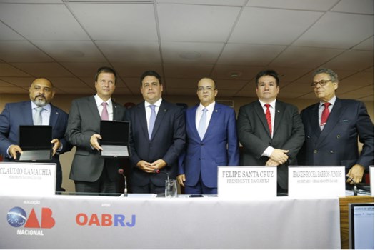 Além de Lamachia e Santa Cruz, a mesa contou com o secretário-geral adjunto da OAB Nacional, Ibaneis Rocha; o diretor-tesoureiro Oneildo Ferreira; o presidente da Comissão Nacional de Defesa das Prerrogativas e Valorização da Advocacia, Jarbas Vasconcelos; o procurador nacional de Defesa das Prerrogativas, Charles Dias; o presidente da OAB-AC, Marcos Vinicius Jardim Rodrigues; o presidente da OAB-RJ, Felipe Santa Cruz; Luciano Bandeira, diretor de Prerrogativas da OAB-RJ; e Técio Lins e Silva, presidente do Instituto dos Advogados Brasileiros (IAB).
