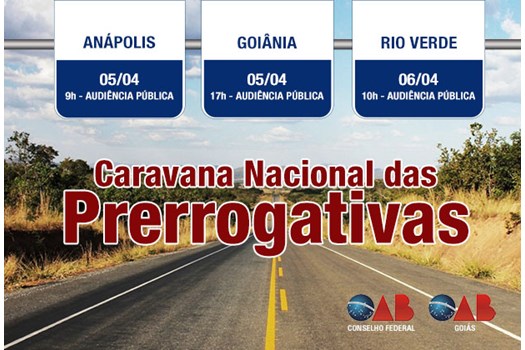 Em Goiás a Caravana terá início em Anápolis, município a 50km de Goiânia, e seguirá para a capital ainda no primeiro dia. Na manhã seguinte, as atividades acontecem em Rio Verde, prosseguindo para o encerramento que acontecerá em Caldas Novas, em concomitância com a abertura do Colégio de Presidentes das Subseções da OAB Goiás.