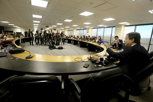 Brasília – O presidente nacional da OAB, Claudio Lamachia, concedeu entrevista coletiva na sede da entidade nesta segunda-feira (22) para falar com jornalistas acerca do pedido de impeachment que será protocolado na Câmara dos Deputados até o fim desta semana. O Conselho Pleno da OAB decidiu pelo pedido em reunião extraordinária no último sábado.