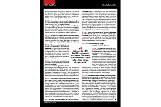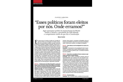 Brasília - Confira a entrevista do presidente nacional da OAB, Claudio Lamachia, publicada na edição desta sexta-feira (26), da Revista Época: