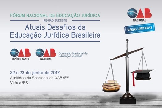 Brasília – O Conselho Federal da OAB e a Seccional capixaba da Ordem promoverão, nos dias 22 e 23 de junho, a etapa Sudeste do Fórum Nacional de Educação Jurídica, em Vitória. O evento contará com especialistas que debaterão o tema central: Atuais Desafios da Educação Jurídica Brasileira.