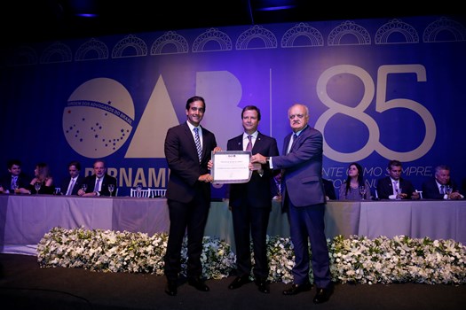 Brasília (DF) e Recife (PE) – O presidente nacional da OAB, Claudio Lamachia, participou na noite desta quinta-feira (10) da solenidade comemorativa dos 85 anos da Seccional pernambucana da Ordem, onde foi agraciado com um diploma pela notável contribuição à advocacia pernambucana. O secretário-geral adjunto da OAB Nacional, Ibaneis Rocha, também esteve presente na solenidade.