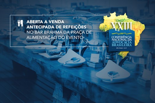 Brasília – Visando facilitar a rotina dos participantes durante os quatro dias do evento, a organização da XXIII Conferência Nacional da Advocacia Brasileira disponibilizou a venda antecipada, a preço promocional, de refeições no buffet do Bar Brahma da praça de alimentação. É possível acessar o cardápio de cada dia – que conta com mesa de saladas e guarnições, almoço e sobremesa – clicando aqui.