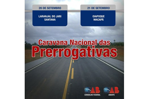 A OAB Amapá é a 18ª Seccional a receber a Caravana Nacional das Prerrogativas da Advocacia na atual gestão. Antes foram visitadas as Seccionais do Paraná, Santa Catarina, Tocantins, Ceará, Amazonas, Paraíba, Bahia, Espírito Santo, Piauí, Mato Grosso do Sul, Maranhão, Rio Grande do Norte, Goiás, Mato Grosso, Alagoas, Rondônia e Distrito Federal.