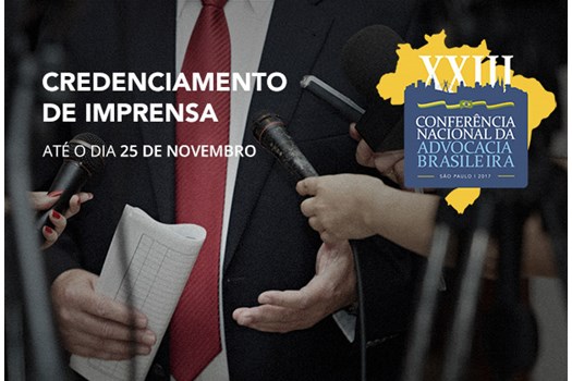 Brasília – Está aberto o credenciamento de imprensa para a XXIII Conferência Nacional da Advocacia Brasileira. Jornalistas, fotógrafos e cinegrafistas que realizarão a cobertura do maior evento jurídico da América Latina devem enviar os dados para credenciamento até o dia 25 de novembro.