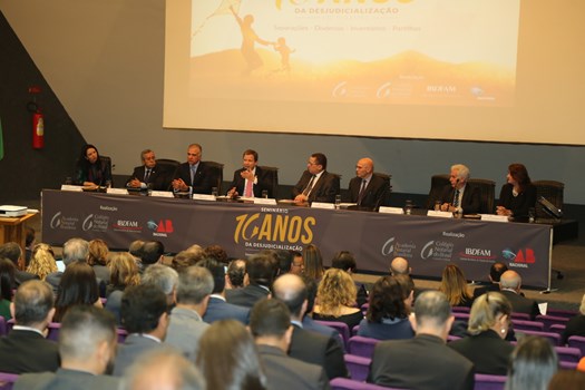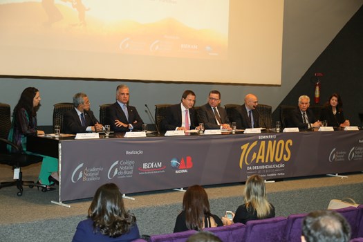 O “Seminário 10 Anos da Desjudicialização – Lei 11.441/07” é organizado pela OAB Nacional em parceria com a Academia Notarial Brasileira, Colégio Notarial do Brasil e o IBDFAM (Instituto Brasileiro de Direito de Família). Durante todo o dia foram debatidos temas como dissolução do casamento em vida, inventário e partilha, e jurisdição voluntária.