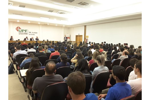 Passo Fundo (RS) - Foi com o Salão de Atos da Faculdade de Direito da Universidade de Passo Fundo (UPF) lotado que o presidente nacional da OAB, Claudio Lamachia, não só palestrou sobre o “O compromisso da OAB com a democracia”, para mais de 300 acadêmicos de Direito e comunidade local, como também foi homenageado pela Universidade na noite desta quinta-feira (16).