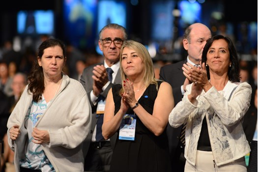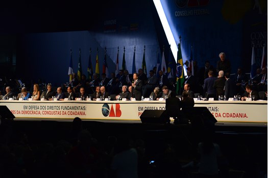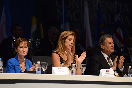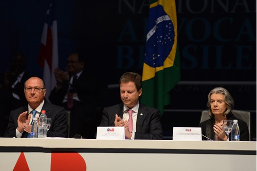 A mesa de honra da XXIII Conferência Nacional da Advocacia Brasileira teve a presença das seguintes autoridades: Claudio Lamachia, presidente nacional da OAB; Cármen Lúcia, presidente do Supremo Tribunal Federal; Geraldo Alckmin, governador do Estado de São Paulo; Marcos da Costa, presidente da OAB de São Paulo; Emmanoel Pereira, vice-presidente do Tribunal Superior do Trabalho; senador Álvaro Dias; Alexandre de Moraes, ministro do STF; Luis Felipe Salomão, ministro do STJ; desembargador Paulo Dimas de Bellis Mascaretti, presidente do Tribunal de Justiça de São Paulo.