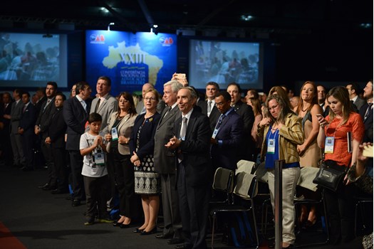 O presidente nacional da OAB, Claudio Lamachia, deu as boas-vindas oficiais aos congressistas e anunciou o maestro e pianista João Carlos Martins para a execução do Hino Nacional. A performance emocionou o público presente, que pôde acompanhar ainda outros dois números de Martins, acompanhado da Camerata Bachiana.