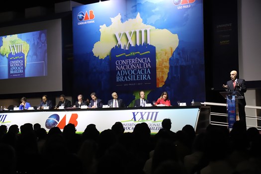 São Paulo - O respeito às normas internacionais dos direitos humanos e à divisão de poderes deu o tom do Painel 1 – Dignidade da Pessoa Humana - no primeiro dia da XXIII Conferência Nacional da Advocacia Brasileira. A mesa, que ocorreu ao longo da tarde de segunda-feira (27) com excelente presença de público, foi presidida por Ophir Filgueiras Cavalcante Júnior e contou com a relatoria de Sílvio Pessoa de Carvalho Júnior e secretaria de Antonio Cândido Barra Monteiro de Britto.