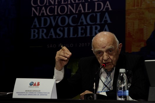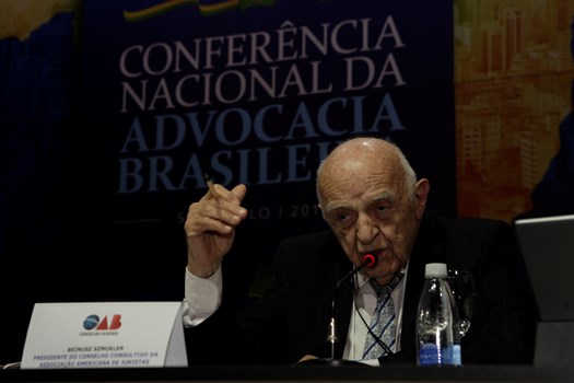 O professor Beniusz Smukler iniciou sua fala com uma homenagem pela entrega da medalha Rui Barbosa à advogada gaúcha Cléa Carpi, primeira mulher a receber o prêmio. Em sua participação, Smukler destacou dados sobre a atual situação socioeconômica do mundo e pontuou que as consequências de situações de profunda desigualdade são o desafio de maior escala para o direito internacional no século 21. Para ele, o problema é o desrespeito à soberania dos povos por parte das corporações, cujos interesses se sobrepõem aos direitos sociais.