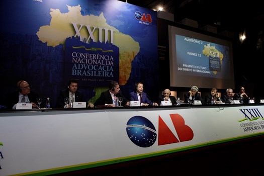 Paulo Marcondes Brincas, presidente da OAB de Santa Catarina, dirigiu os trabalhos com relatoria de Marcelo Lovacat Galvão e a secretaria de Erik Limongi Sial. Os conferencistas expuseram concepções distintas sobre soberania e para os eixos centrais da ação do direito internacional. O presidente nacional da OAB, Claudio Lamachia, compareceu ao evento para saudar a qualidade dos congressistas, responsáveis por tornar a XXIII Conferência Nacional da Advocacia no maior evento jurídico do mundo.