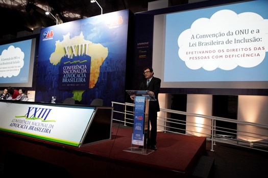 A Convenção da ONU e a efetivação dos direitos das pessoas com deficiência foi tema da intervenção de Joelson Dias, vice-presidente da Comissão Especial dos Direitos da Pessoa com Deficiência do Conselho Federal da OAB, que insistiu na necessidade de mudanças para além das leis. “Sem uma mudança cultural, de hábitos, de atitude, essa verdadeira revolução em cada indivíduo, não tem Convenção da ONU, tratado, Lei Brasileira de Inclusão, instrumento ou instituição que dará conta da efetivação desses direitos”, exortou. “Teremos sempre uma distância muito grande entre o papel e a atuação das nossas instiuições e o que está nos corações e mentes de todos nós.”