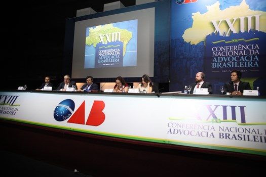 A mesa teve como relator Emerson Delgado Gomes, integrante da Comissão Especial de Direito Eleitoral do Conselho Federal da OAB, e secretário, Wederson Advincula Siqueira, que, finalizando o primeiro debate, fez uma homenagem ao coordenador do evento, Erick Wilson Pereira, presidente da Comissão Especial de Direito Eleitoral.