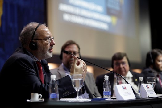 Dividido em quatro subtemas, o painel abordou "Constituição e Democracia”, "O Princípio Anticorrupção e suas Repercussões Jurídico-Sociais”, “O Respeito pelos Direitos Humanos Pode Encorajar o Investimento Estrangeiro Direto?”, e sobre "A Utopia da Refundação do Estado de Direito num Ambiente Securitário à Escala Planetária".