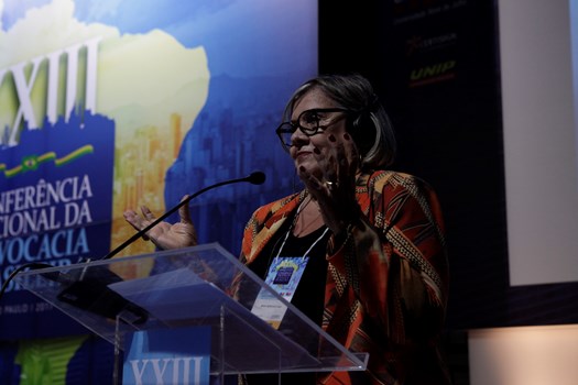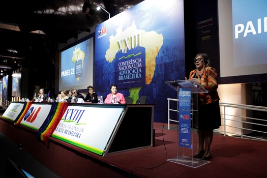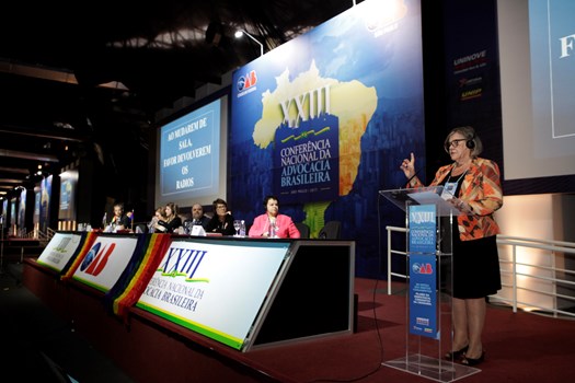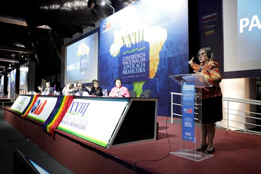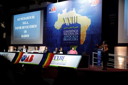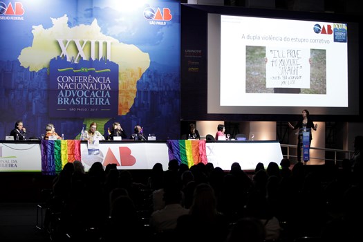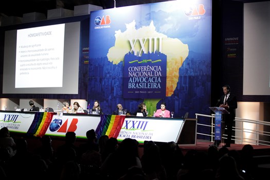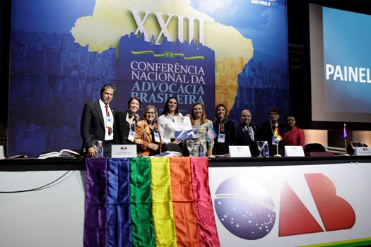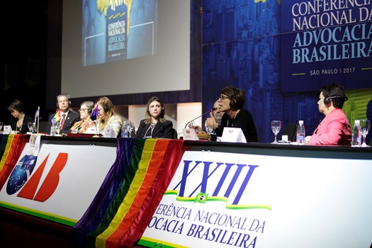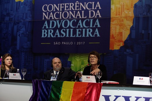 Maria Berenice Dias, presidente da Comissão Especial da Diversidade Sexual e Gênero do Conselho Federal da OAB, falou sobre a importância do painel de discussão do assunto para a história do congresso e do Brasil durante a palestra “Uma Lei para garantir Direitos Fundamentais a LGBTI”. A bandeira LGBTI foi colocada em uma mesa de discussão e um estande especial para o assunto foi montado no evento.