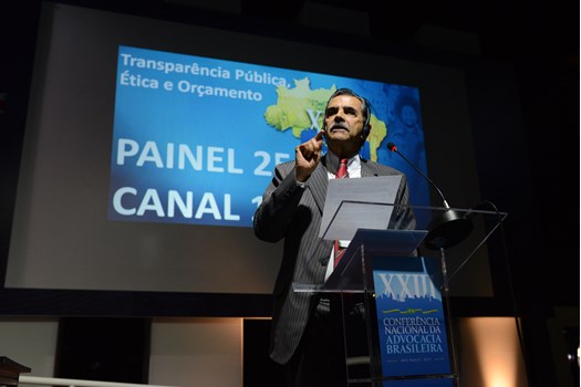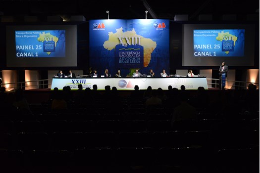 São Paulo - A XXIII Conferência Nacional da Advocacia Brasileira recebeu nesta quarta-feira (29) o painel 25, “Transparência Pública, Ética e Orçamento”, presidido por Leonardo Pio da Silva Campos, presidente da OAB-MT, com a relatoria de Duilio Piato Júnior, conselheiro da OAB-MT e secretaria de Sérgio Eduardo Fisher, conselheiro federal da OAB-RJ. As apresentações foram baseadas no tema da transparência e a ética na gestão do Estado e do orçamento.