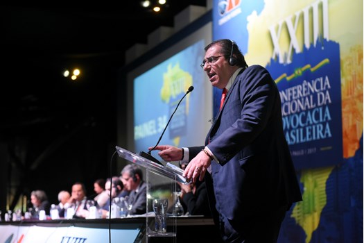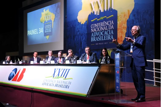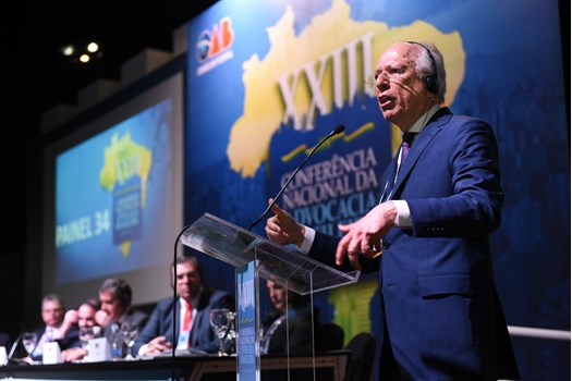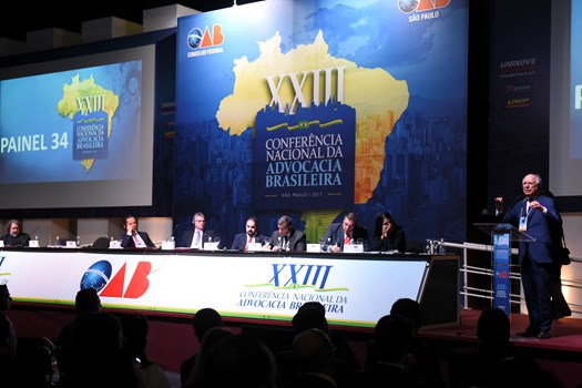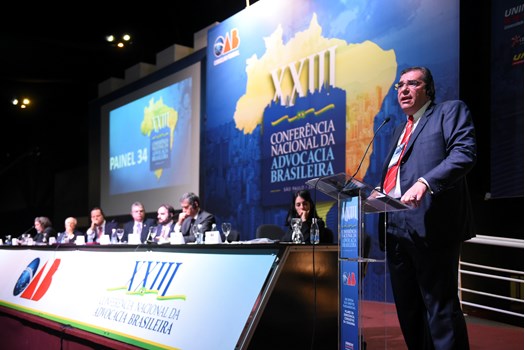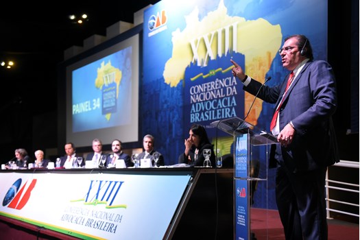 São Paulo - Os problemas decorrentes de abusos das autoridades policiais e judiciais no processo de enfrentamento contra a corrupção guiaram, nesta quarta-feira (29), o Painel 34 da XXIII Conferência Nacional da Advocacia Brasileira, em São Paulo. A mesa foi presidida pelo membro honorário vitalício da OAB Ernando Uchôa Lima, acompanhado pelo relator Guilherme Octávio Batochio e pelo secretário Maurício Gentil Monteiro.
