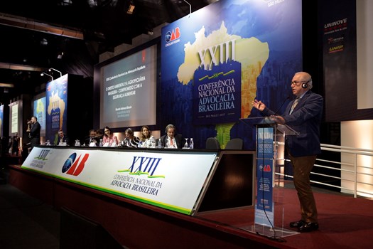 Após a fala do presidente, o advogado Ricardo Barbosa Alfonsin trouxe à tona a relação entre o Direito ambiental e o agronegócio brasileiro, além de questões e medidas de segurança alimentar. “O mundo exige mais alimentos, a população cresce em níveis alarmantes”, alertou. Destacou também a importância de incentivos para a produção sustentável: “Temos um desafio grande de buscar condições para que o grande potencial brasileiro de fornecer comida ao mundo não seja perdido por questões ideológicas.” Ele propôs a criação de uma Comissão Especial do Direito Agrário e integração para trabalhar em conjunto com a Comissão Nacional de Meio Ambiente.
