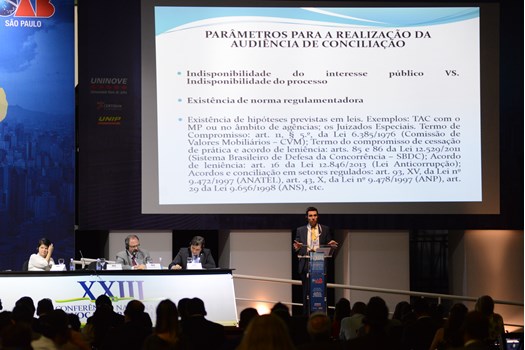 Nesse sentido, o professor da Universidade Estadual do Rio de Janeiro (Uerj) Marco Antônio Rodrigues proferiu a palestra “Parâmetros Objetivos para realização da Audiência Prévia de Conciliação nas Causas envolvendo a Fazenda Pública”, em que assentou a relevância de meios consensuais para solução de conflitos envolvendo o Estado, como Arbitragem, Conciliação e Mediação, que já têm sido utilizados para resolver problemas como reivindicações coletivas de servidores públicos no Rio de Janeiro, por exemplo. Nesse caso, se estabelece a realização de audiências prévias, em que as partes podem dialogar e, algumas vezes, chegar a entendimentos.
