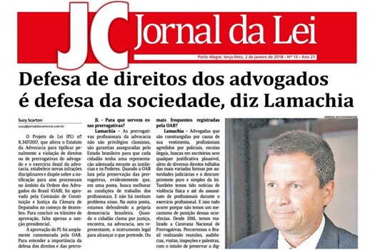 A aprovação do PL foi amplamente comemorada pela OAB. Para entender a importância da defesa dos direitos e das prerrogativas do advogado, o Jornal da Lei conversou com o presidente da OAB nacional, Claudio Lamachia. Para ele, a aprovação dessa lei transformará a prática da profissão, como nenhuma lei o fez desde a aprovação do Estatuto da Advocacia, em julho de 1994.