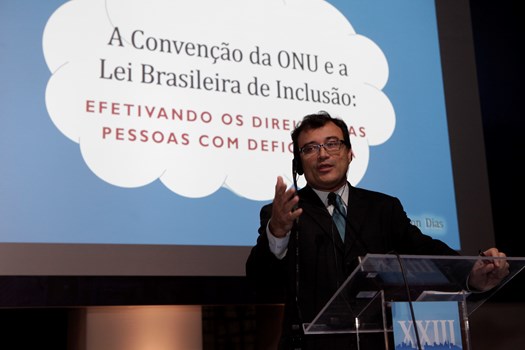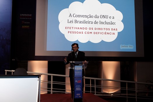 A Convenção da ONU e a efetivação dos direitos das pessoas com deficiência foi tema da intervenção de Joelson Dias, vice-presidente da Comissão Especial dos Direitos da Pessoa com Deficiência do Conselho Federal da OAB, que insistiu na necessidade de mudanças para além das leis. “Sem uma mudança cultural, de hábitos, de atitude, essa verdadeira revolução em cada indivíduo, não tem Convenção da ONU, tratado, Lei Brasileira de Inclusão, instrumento ou instituição que dará conta da efetivação desses direitos”, exortou. “Teremos sempre uma distância muito grande entre o papel e a atuação das nossas instituições e o que está nos corações e mentes de todos nós.”