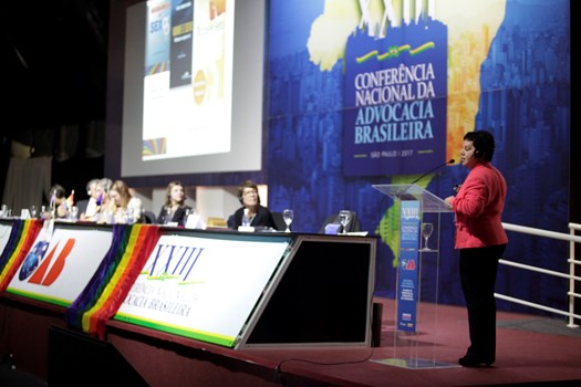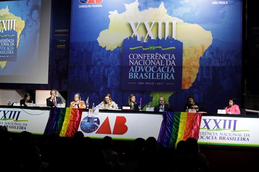 Maria Berenice Dias, presidente da Comissão Especial da Diversidade Sexual e Gênero do Conselho Federal da OAB, falou sobre a importância do painel de discussão do assunto para a história do congresso e do Brasil durante a palestra “Uma Lei para garantir Direitos Fundamentais a LGBTI”. A bandeira LGBTI foi colocada em uma mesa de discussão e um estande especial para o assunto foi montado no evento.