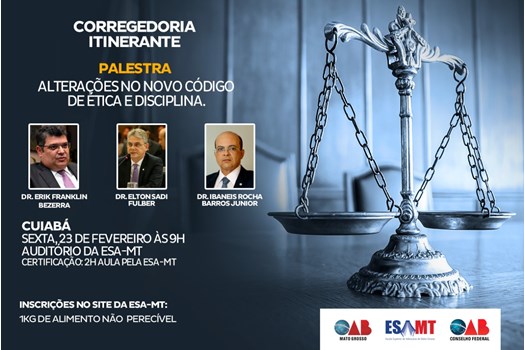 Às 9h, está marcada a palestra aberta “Principais atualizações do Novo Código de Ética e Disciplina”, com a participação dos corregedores-adjuntos Erik Franklin Bezerra e Elton Sadi Fulber.