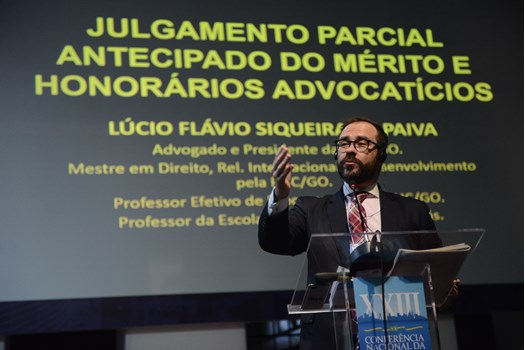 Na sequência, foi a vez do presidente da OAB de Goiás, Lúcio Flavio Siqueira de Paiva, falar sobre julgamento parcial do mérito e honorários advocatícios. Ele explicou o tema, que permite que o juiz "fatie" o processo, julgando o mérito de forma parcial. “A decisão que julga parcial e antecipadamente tem um invólucro de decisão interlocutória, mas um conteúdo típico de sentença, o que questiona a natureza jurídica”, enfatizou Paiva, que apresentou, ainda, pontos sobre recursos cabíveis, honorários sucumbenciais, além de apresentar casos atuais julgados favoráveis e contrários.