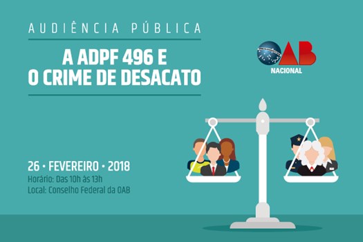 Brasília – Na próxima segunda-feira, 26 de fevereiro, a OAB Nacional promoverá a audiência pública “A ADPF 496 e o Crime de Desacato”, evento que reunirá na sede da entidade advogadas, advogados, magistrados e autoridades públicas para um debate acerca do desacato a agente público sob o prisma da Arguição de Descumprimento de Preceito Fundamental nº 496.