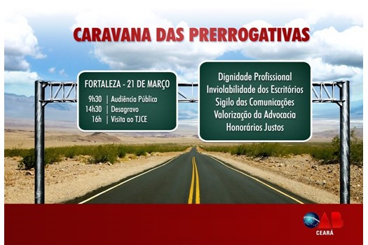 Brasília – A Caravana Nacional das Prerrogativas, iniciativa da OAB Nacional em parceria com as Seccionais que percorre o Brasil para defender e fiscalizar as condições do exercício profissional da advocacia, chegará nesta quarta-feira (21) à Seccional do Ceará.
